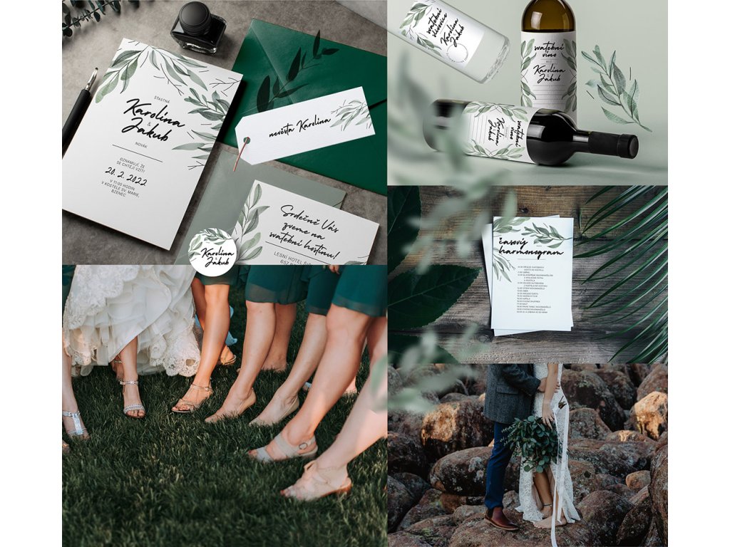 Svatební balíček tiskovin KOMU SE NELENÍ, TOMU SE ZELENÍ je moderní, jemný, zároveň s něj srší energie. Tento styl bude vynikat na zahradních svatbách i svatbách rustikálně laděných. Náš tip je doplnit tento styl o svatební kytku i výzdobu čistě se zelených rostlin.
